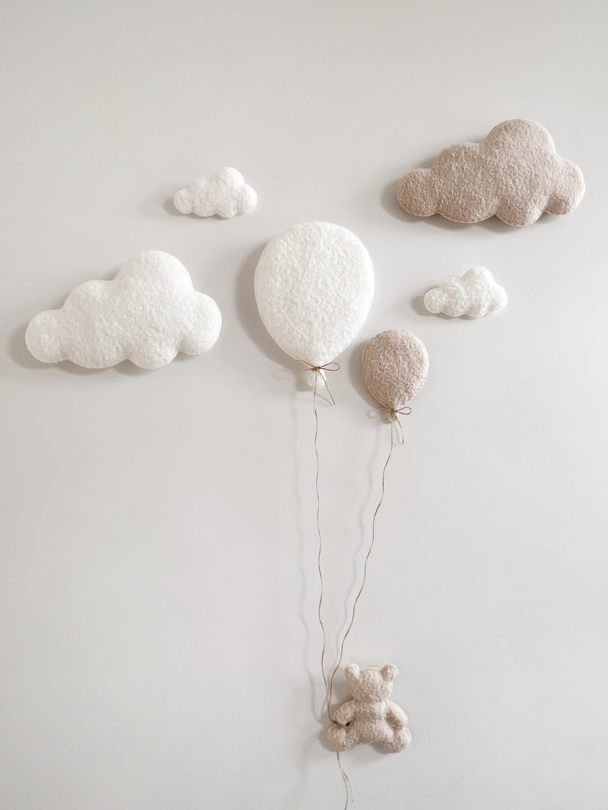 These small individual clouds are perfect if you are wanting to space them out across your nursery wall to create a beautiful sky of clouds. They also pair beautifully with my XL clouds, balloons & teddy bears/elephants to create a super cute wall display! Or you can place them on a shelf as a cute little decoration.